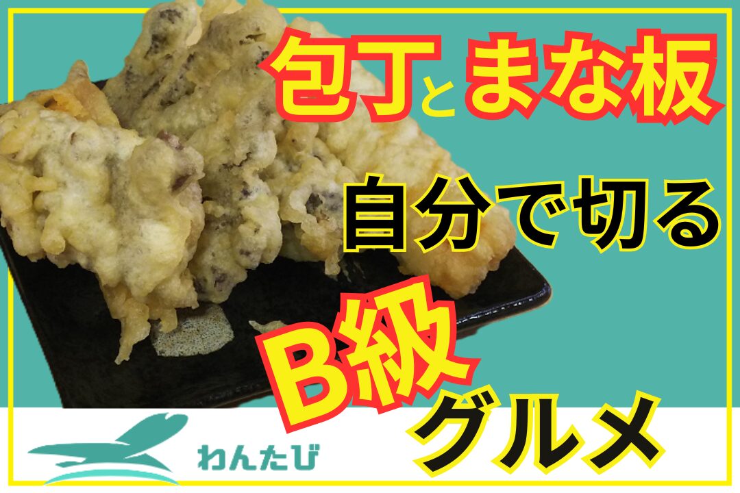 これは、提供されたホルモンの天ぷらをお客が自分で切り分けるためのもの。客席で包丁を使うシステムは、もちろん僕にとって初体験です。